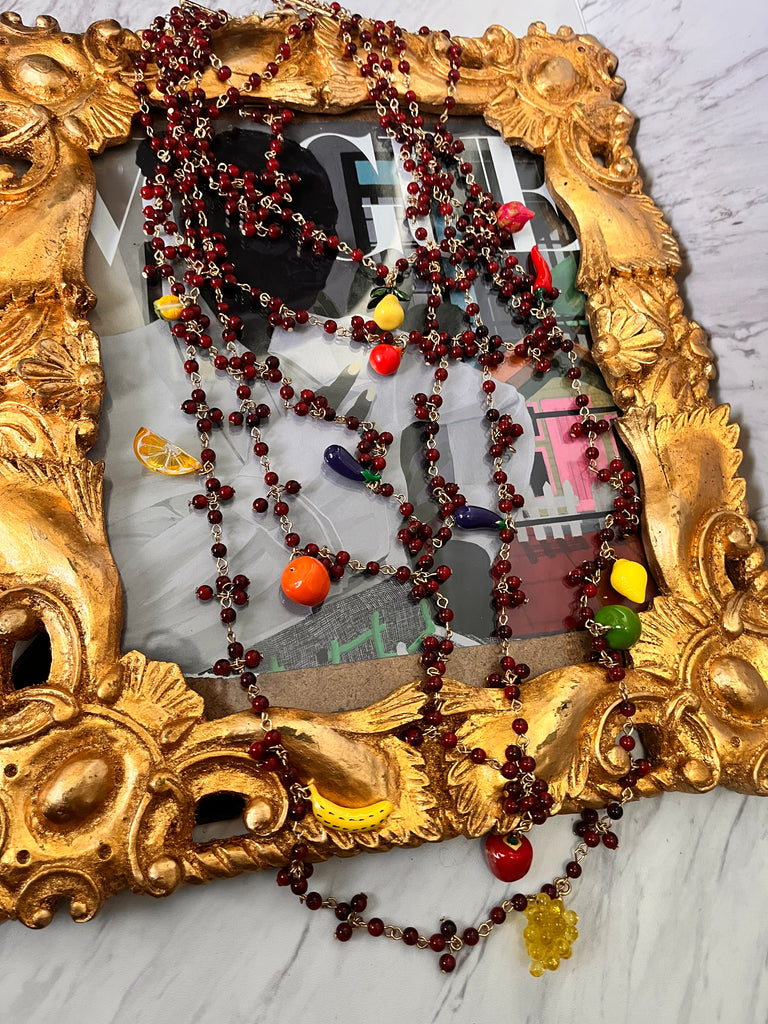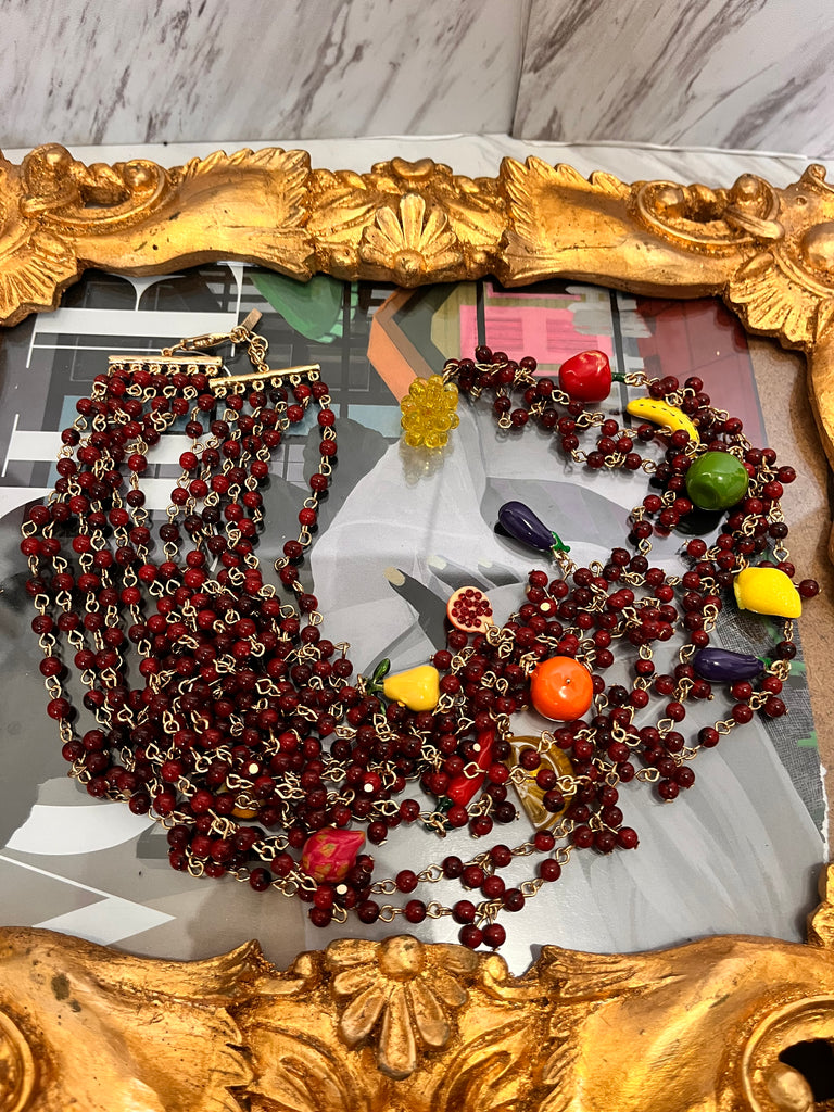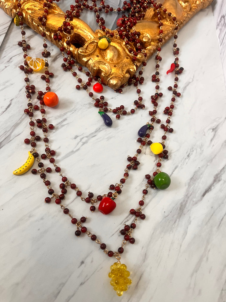 Beautiful layered beaded necklace with fruit details.